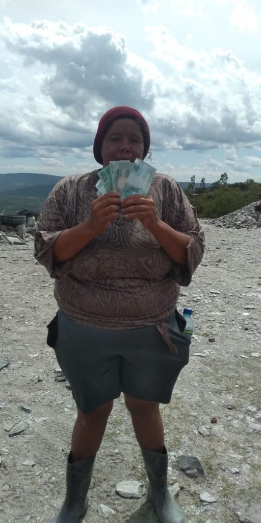 Com o objetivo de garantir melhores condições de trabalho para os quijilas e, ao mesmo tempo atender a uma exigência da Agência Nacional de Mineração – ANM, a Cooperativa Mineral da Bahia – CMB idealizou a realização de uma ação conjunta entre a CMB, mineradores, pedristas, trabalhadores de minas e quijilas para a realização de mutirões para a lavagem de arrolhos e, com o resultado da venda da produção proveniente desses mutirões, comprar tendas e EPIs que serão usadas pelos quijilas. O primeiro mutirão aconteceu na manhã do último dia primeiro de fevereiro nas Minas 01 e Pé de Manga, de propriedade do minerador Bolinha. Mais de 60 quijilas participaram do mutirão, cuja produção foi vendida por R$ 800.