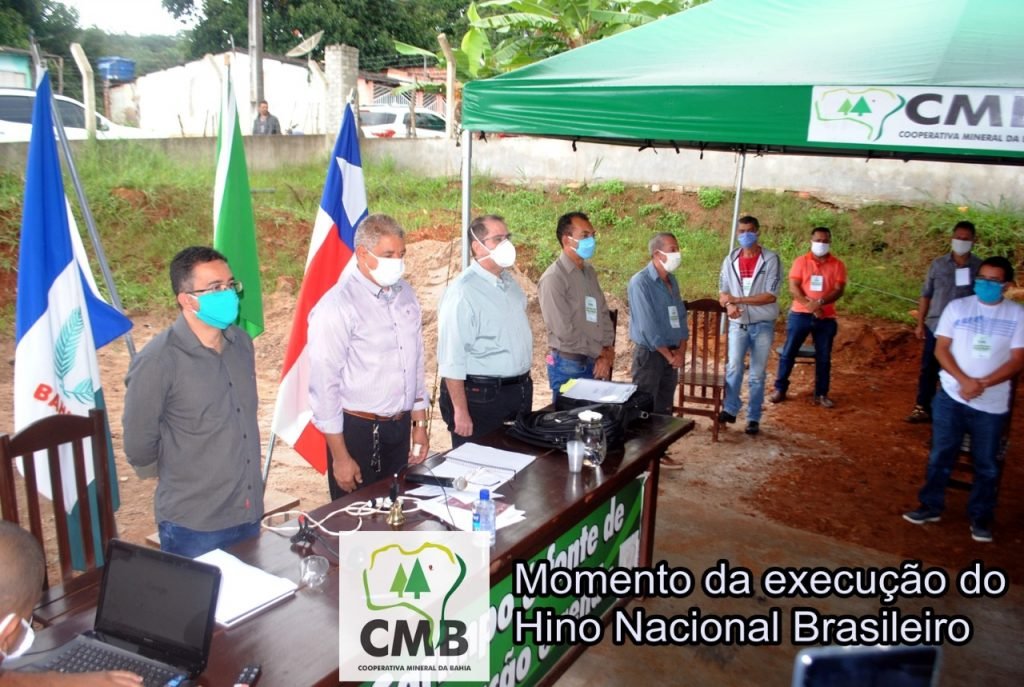 Obedecendo todas as recomendações da organização mundial da saúde, bem como o decreto municipal que estabelece medidas de segurança para o combate ao novo coronavírus (Covid-19), como o uso obrigatório de máscaras, distanciamento entre os participantes e higienização das mãos e microfones com álcool gel, a diretoria da Cooperativa Mineral da Bahia realizou na manhã do último sábado, dia 02 de maio, uma importante assembleia geral extraordinária, que contou com a presença de 53 cooperados, os quais ocuparam dois espaços distintos (interno e externo do prédio), para o cumprimento do que determina o decreto municipal, que só permite aglomerações de no máximo 30 pessoas por ambiente.