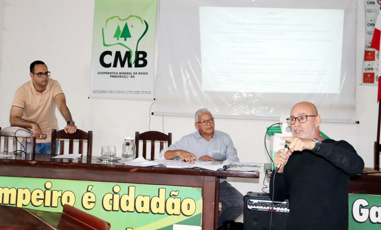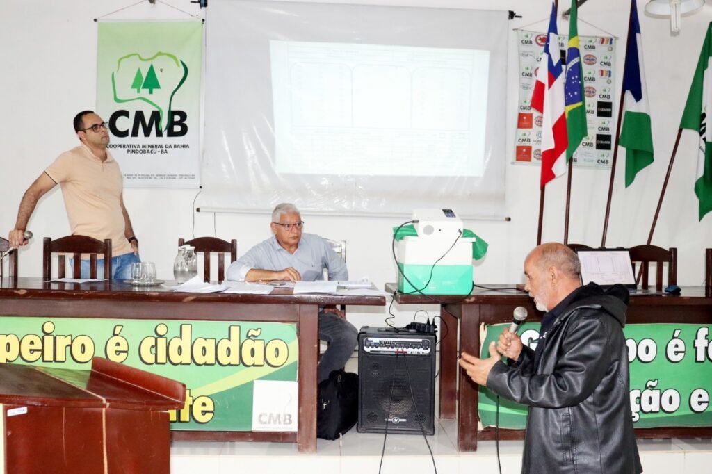 A Cooperativa Mineral da Bahia (CMB) realizou, na tarde deste sábado (28), reunião com blasters e responsáveis pelas Concessões Minerais outorgadas pela cooperativa. Mesmo com as fortes chuvas registradas na região, mais de 60 pessoas compareceram ao encontro, realizado na sede da entidade.